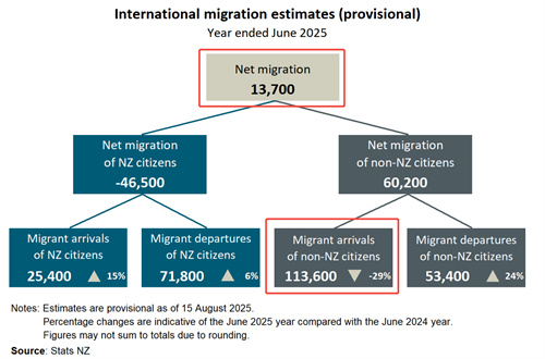 新西兰统计局8月15日发布的最新移民数据显示,2025年6月,新西兰移民净增长达到13,700人,充分反映出该国持续增强的人口吸引力。