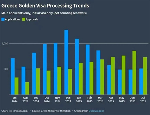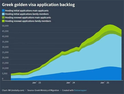 而在2025年7月,希腊黄金签证项目也迎来了历史性的拐点。据官方数据显示,当月“黄金签证”积压案件减少了2772宗,这是有记录以来最大的单月降幅。