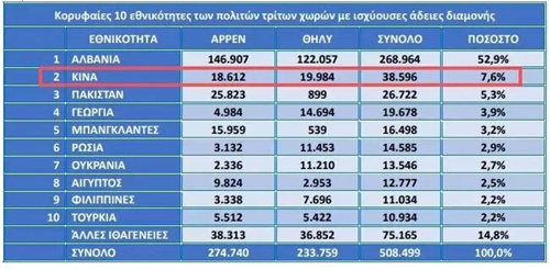 而持有希腊有效居留许可的中国籍公民共有38,596人,其中通过黄金签证获得的占最大比例,共有24,301人。 在黄金签证申请者中,续签数量最多的为中国籍申请者,其次是土耳其、俄罗斯,紧接着是亚洲及非洲多个国家。