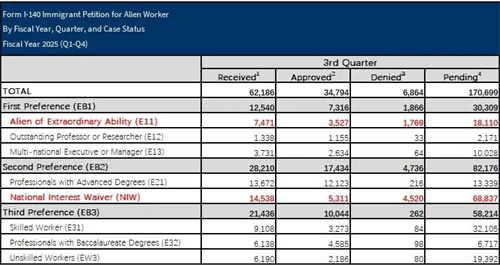 近期,美国公民及移民服务局(USCIS)正式公布2025财年第三季度各移民类别的相关统计数据。