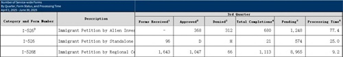 积压问题依然存在,目前I-526E待审8965份,加上直投和旧政案件,整体待审量已超过1万件。