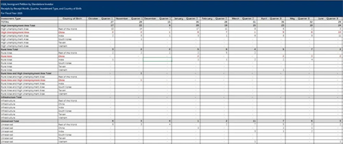 先来看数据,2025财年1——3季度,按收件月份、季度、投资类型及出生国家划分的申请受理数量统计: