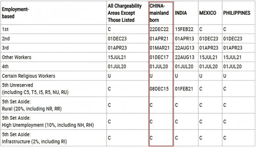 • EB1(杰出人才)原地踏步,停在2022年12月22日; • EB2(NIW)原地踏步,停在2021年4月1日; • EB3(技术劳工)原地踏步,停在2021年3月1日; • EW-3(EB3非技术劳工)原地踏步,停在2017年12月1日; • EB4(特殊人员)停用; • EB5(区域中心)原地踏步,停在2015年12月8日; • EB5(乡村、高失业地区、基建项目)继续无排期。