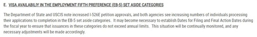 该法案为三类特定类型项目预留了32%的签证配额,目前仍处于无排期状态: