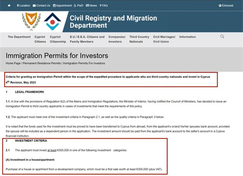 目前,塞浦路斯永居计划仍然维持着较低的门槛。