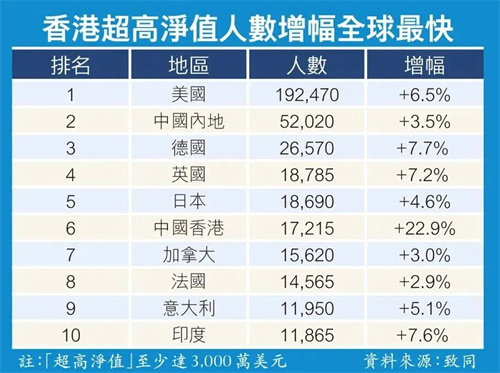 今年上半年,香港新增了3208位资产3000万美元以上的超级富豪,增幅高达22.9%。