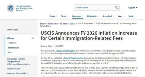 美国公民及移民服务局(USCIS)表示,修订后的收费标准适用于HR 1法案涵盖的特定移民福利。此次调整反映了2024年7月至2025年7月期间的通货膨胀情况。