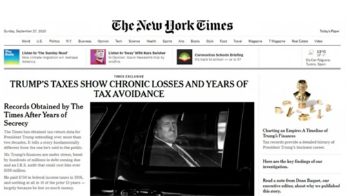 《纽约时报》一篇文章爆出,川普在18年的联邦收入税记录中,竟然整整11年一分税都没交。