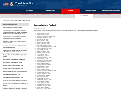 2026年1月6日,美国国务院在其官方网站悄然更新了《签证保证金试点计划》(Visa Bond Pilot Program)的国家名单,将原来的13个国家扩容至38个国家。这一调整将于2026年1月21日开始正式生效,意味着更多国家的公民在 ...