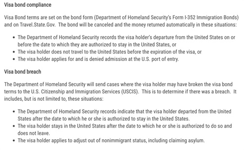 • 作用目的:提高遵守签证期限的激励,降低签证滞留不归风险。 • 适用签证:主要针对 B-1(商务)/B-2(旅游)访客签证申请者。 • 金额档位:5,000、10,000 或 15,000 美元,由领事官在面谈时根据申请人背景情况裁定。 • 支付方式:申请人面签通过后,在指定银行柜台或通过美国财政部的 Pay.gov 系统在线支付,不可分期。 • 退还条件:若按签证规定入境、按时离境,并在离境后按规则提交退款申请,保证金可全额退还;若逾期滞留或违反签证条款,则保证金被没收并可能导致未来签证更难获得。