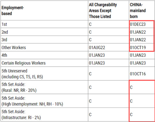 ·EB1(杰出人才)原地踏步,停在2023年12月1日; ·EB2(NIW)原地踏步,停在2022年1月1日; ·EB3(技术劳工)原地踏步,停在2022年1月1日; ·EB3非技术劳工(EW-3)原地踏步,停在2019年10月1日; ·EB4(特殊人员)原地踏步,停在2023年1月1日; ·EB5(区域中心)原地踏步,停在2016年10月1日; ·EB5(乡村、高失业地区、基建项目)继续无排期。