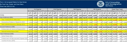 近期,美国移民局公布了2025财年全年I-140职业移民审批数据。