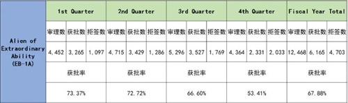 中国申请人是EB-1A与NIW的主力群体,但从获批结果来看,中国申请人的获批率整体低于全球平均水平。